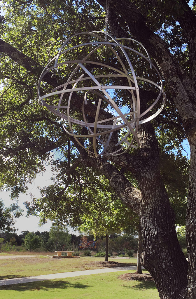 Recycled Aluminum31″ diameterPublic art sculpture. This piece has been installed outdoors in several locations.